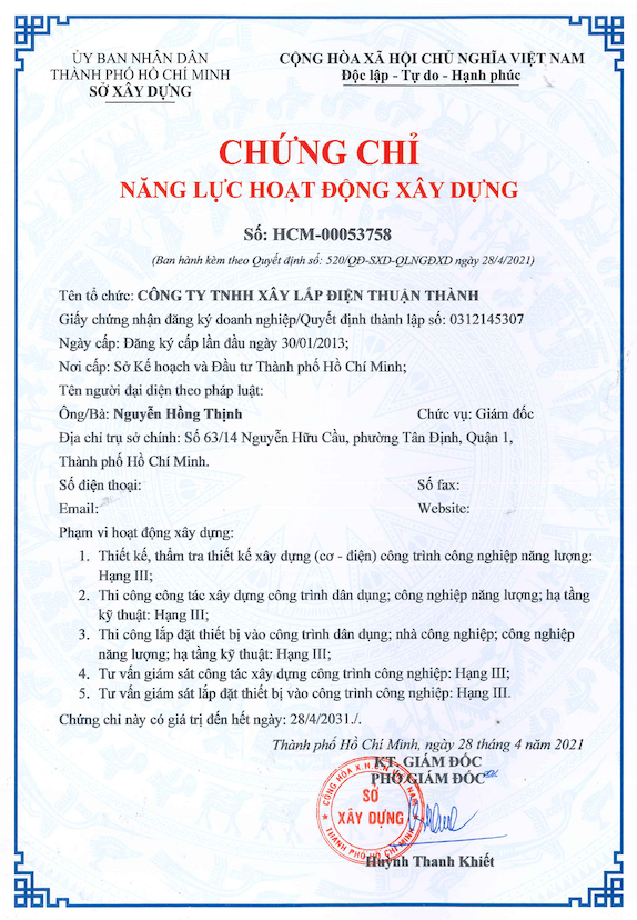 - Tên công ty (Tiếng Anh): Thuan Thanh Electrical Construction Co., Ltd.